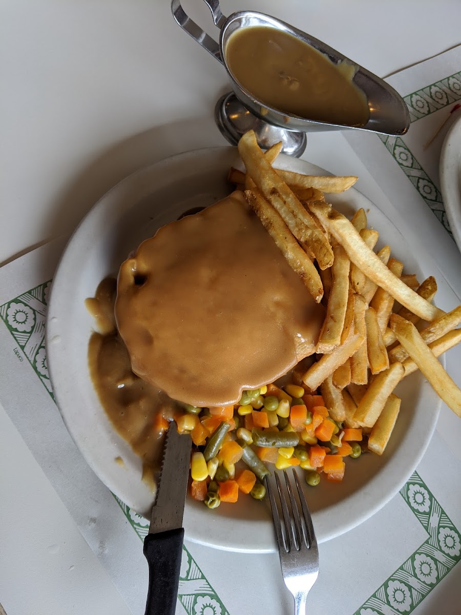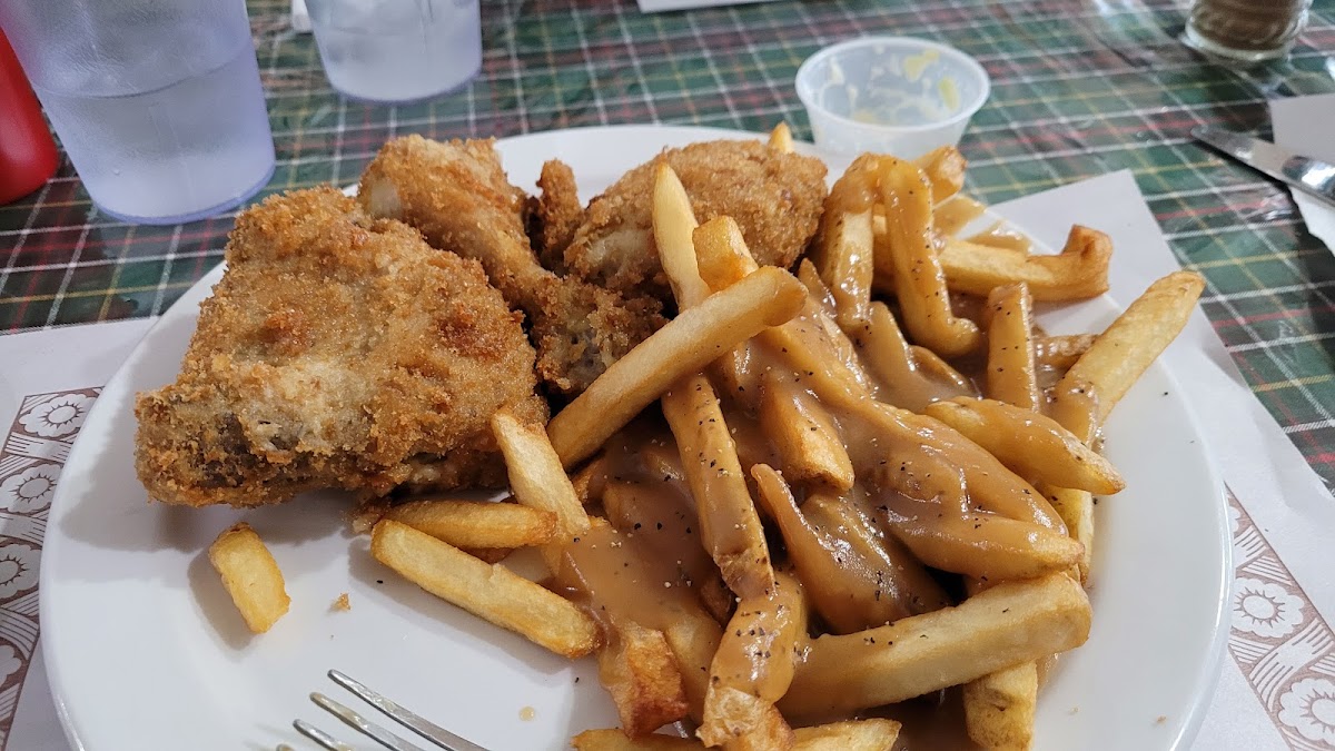 Great dining area, friendly staff. I had the 2 Piece Pan Fried Cod. Fish was great! Fries were frozen but they were still good! Topped with dressing and gravy that were also great. Tartar sauce was average. My brother had the Big Boss Burger and my father had the Roast Turkey Dinner both of which were very good as well. The winner of the three was definitely the burger though !