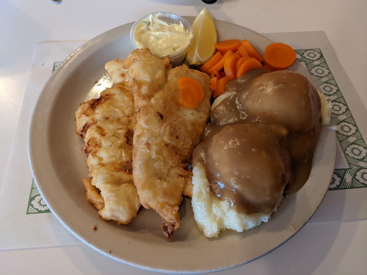 Ate here a couple times while in town. The fish and chips are very good. The pork chop I wouldn’t recommend, it was a little dry. The Philly cheesesteak sandwich however though was very good. Everyone that served us was very nice too. We tried a piece of the lemon pie and it was spectacular, 10/10 recommend.
